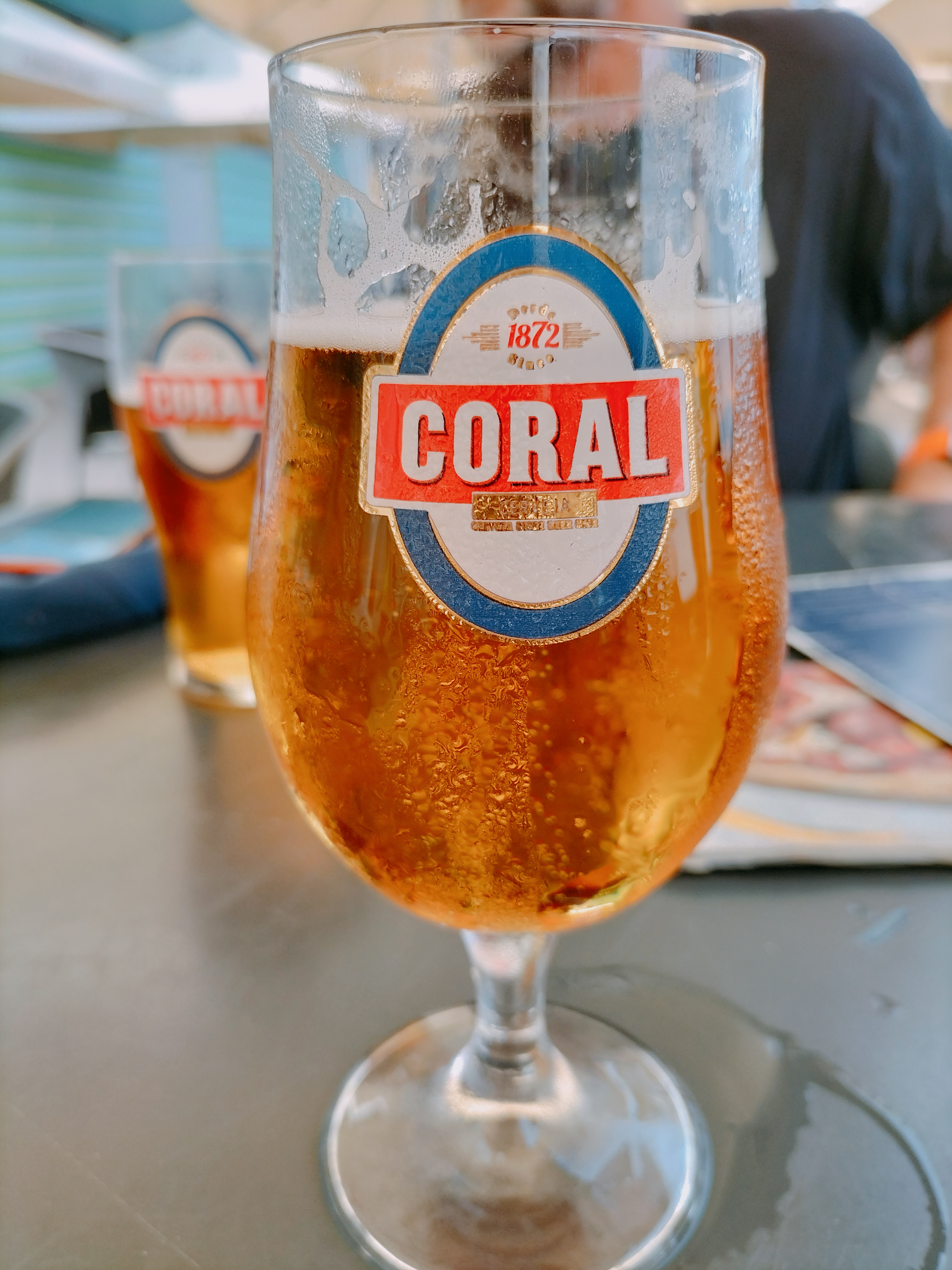 Y allá donde pidas una cerveza te servirán una refrescante y suave cerveza local: Coral.