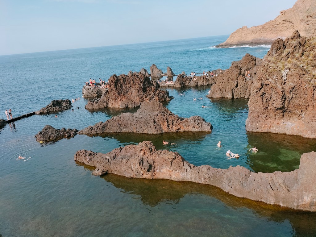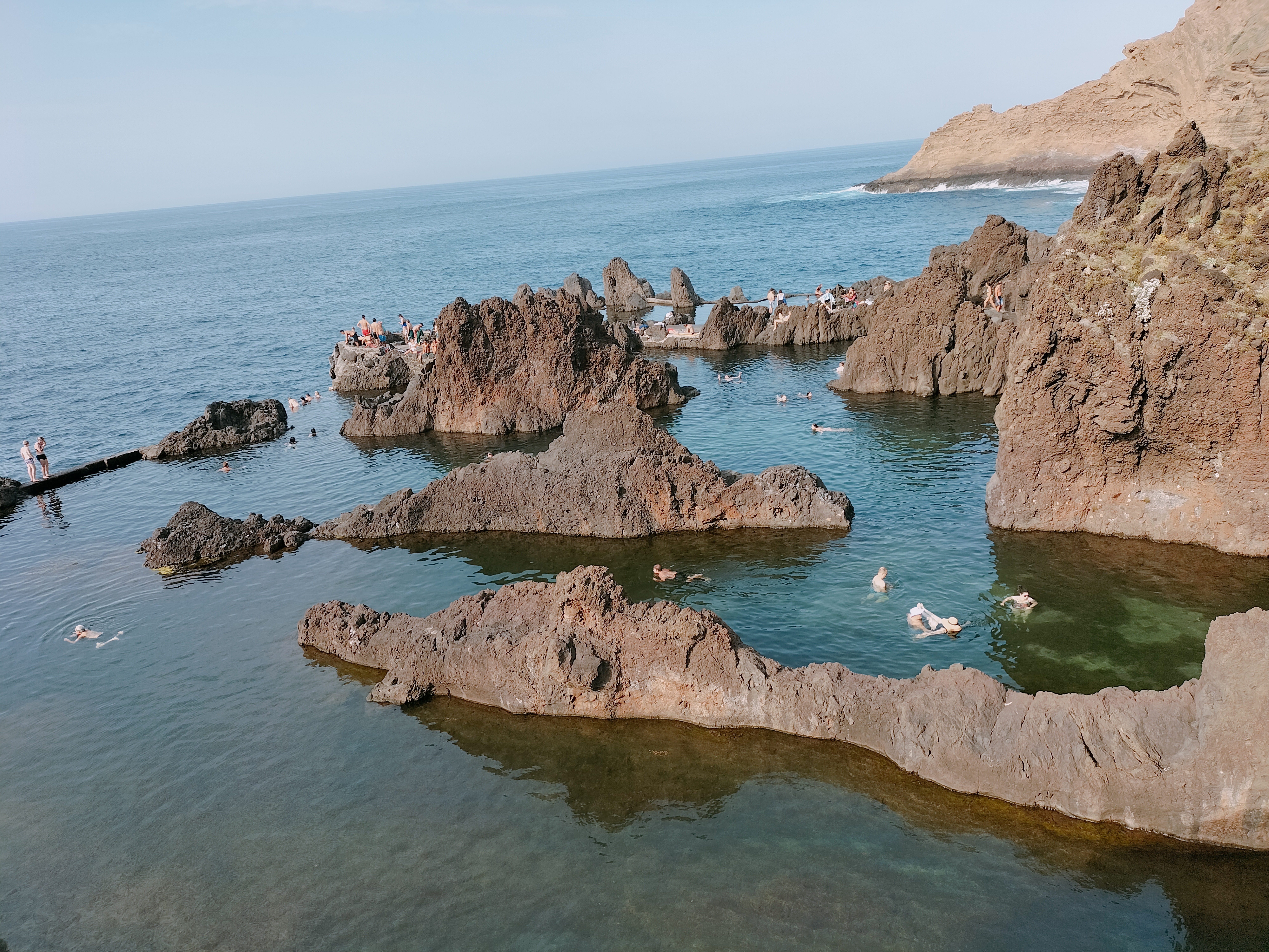 Madeira es muy escarpada, por lo que escasean las playas de arena, la mayoría son de piedra; probablemente por eso se adecuaron para el baño las piscinas naturales que permiten que entre el agua del mar. Las de Porto Moniz, son las más conocidas.